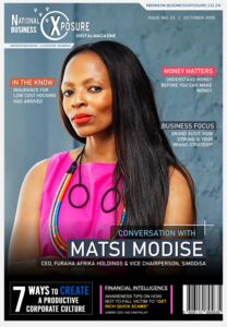 Matsi Modise, founder & CEO of Furaha Solutions, Vice Chairperson of Simodisa Association. About National Business Xposure Digital Magazine focuses on creating exposure for businesses to achieve national footprint. It is a monthly online magazine that features top entrepreneurs from various industries in South Africa; and authors that contribute content in all aspects of entrepreneurship, leadership and business.